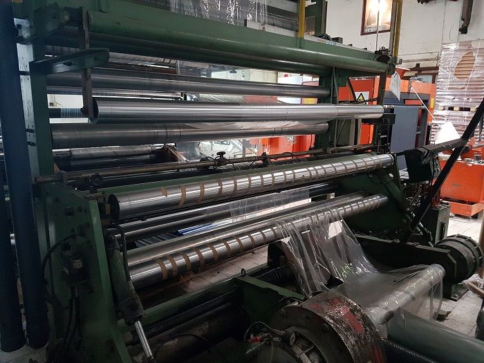 БобинорезкаBielloni Модель 220Год: 1987Для резки одного или нескольких слоев фольгиМатериалы: LDPE, HDPE, EVA, PA + PP от 20-250 мкмРабочая ширина: 2200 ммМаксимальная ширина размотки: 1200 ммМаксимальный диаметр готового рулона: 1000 ммБоковое выравнивание +/- 1 ммМинимальная ширина реза: 250 ммСкорость: до 300 м / минДополнительные детали: 2 электродвигателя,4 пары цилиндров для готовых ролей с внутренним сердечником 76 мм,4 пары катушкодержателей с внутренним сердечником 76 мм. СВЯЗАТЬСЯ С НАМИ